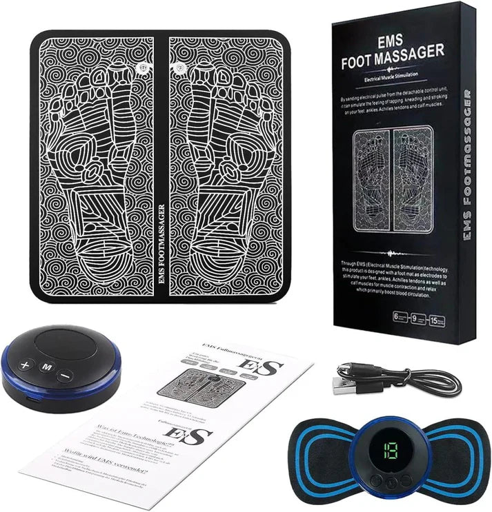 Por eso, hemos creado el Combo Masajeador + Tapete Electrodos un pack único que reúne lo mejor de la tecnología EMS (Electroestimulación Muscular) para aliviar el dolor, mejorar la circulación y relajar todo tu cuerpo desde la comodidad de tu casa. 💆♀️💆♂️