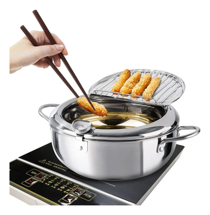 La mayoría de las personas fallan al freír en casa porque no controlan la temperatura del aceite, usan ollas poco seguras o terminan con frituras llenas de grasa. ¡Pero eso se acabó! Esta olla ha sido diseñada con todo lo que necesitas para freír de manera segura, precisa y deliciosa