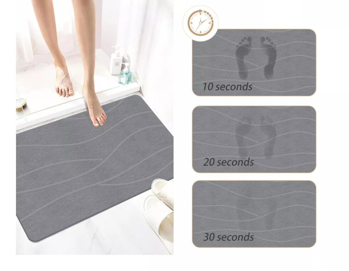 Este Tapete de Piedra absorbe el agua en segundos, manteniendo tu baño siempre seco y seguro. Di adiós a los resbalones peligrosos y dale a tu familia la seguridad que se merece